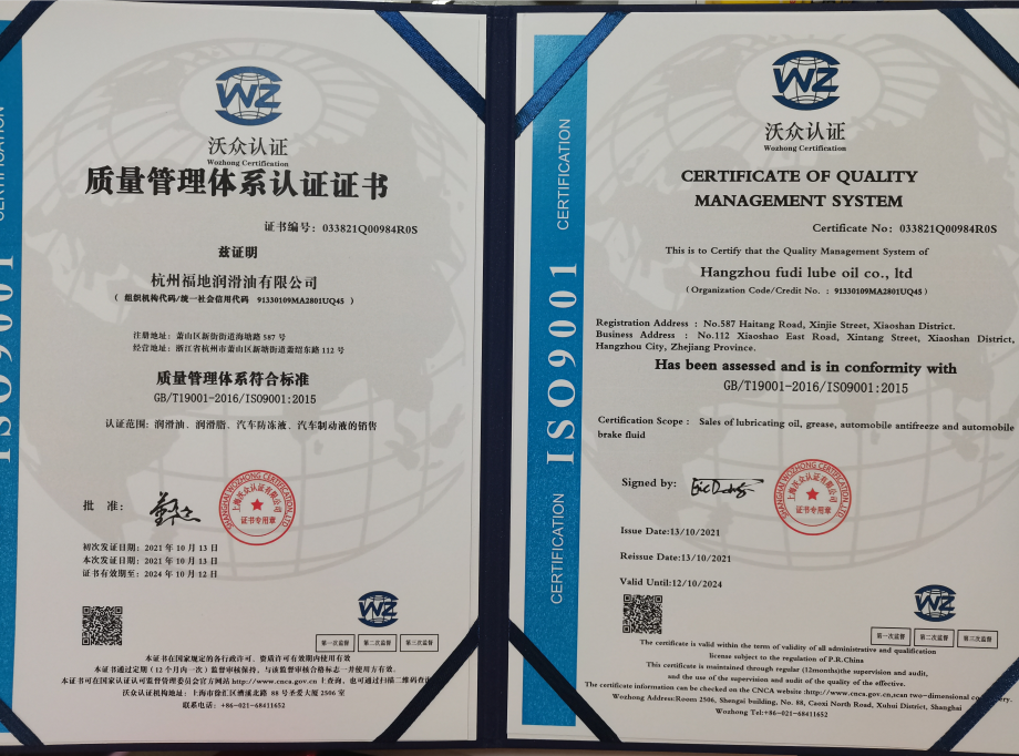 热烈祝贺杭州福地润滑油有限公司顺利通过IS09001质量管理体系认证